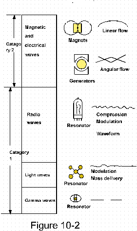 Reference figure 10-2; The magnetic spectrum ranges from one end of nature to the other, it passes all magnitudes of nature. At the base of the ladder we begin with "gamma" waves going on up over light and radio waves to electric and magnetic waves. This chart can be categorized where each may be defined by nature and by length.
