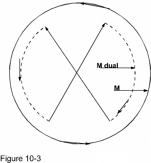 As for our purpose here, when a half wave is brought upon the circle together with what we call, a material structure able to draw, capture, and maintain it, the single circle bears multiplication in its now dual configuration (the figure eight (figure 10-3 m-dual).