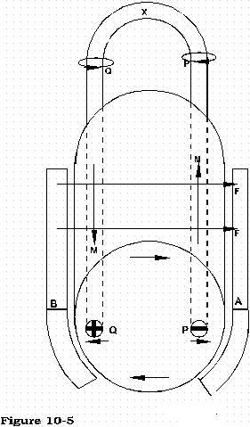 At point A in the illustration (Figure 10-5) imagine the wall of the magnet as were there teeth upon it, and the copper rods as were they gears to engage these teeth.