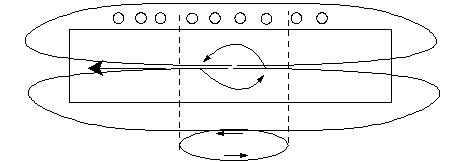The ovals below and upon the metal bar depict the rotation of the conductor that
