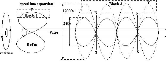 The expansion here is shown from the solid lines to broken lines, one at a given 240 RPS (speed of rotation) with the expanded ones at the speed of 17,000 rotations/second, also called Volts. The volts of any circuit denotes is revolutions per unit in time.