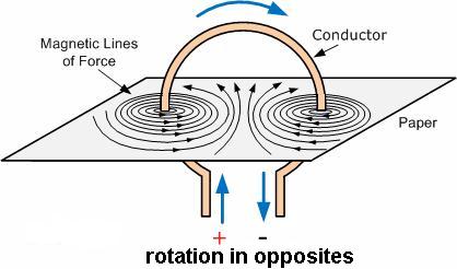 Rotational magnetic force upon a conductor.