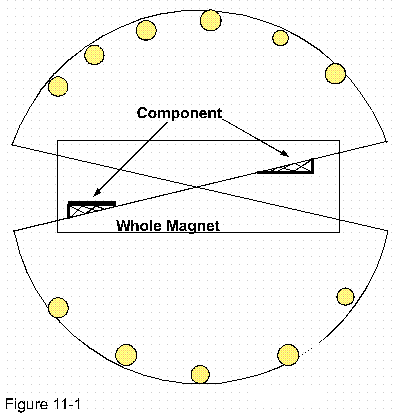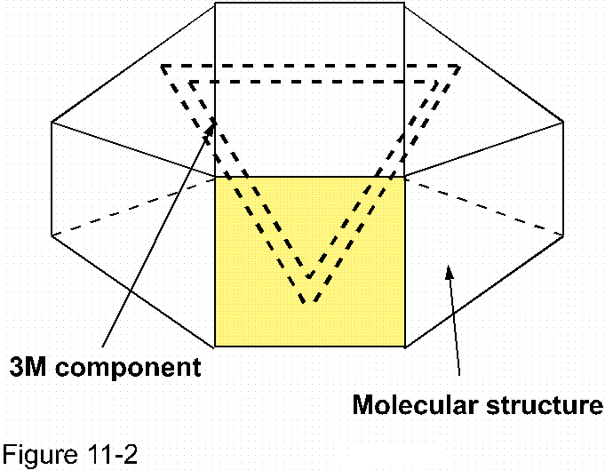 Reference figure 11-3: I cannot at this time supply you with a full detail on the design and operation of the 3M component, except in principle. I then behold a triangle in four perspectives equaling to a seven, which is the coordinate required within which linear magnetic force may be drawn and retained.