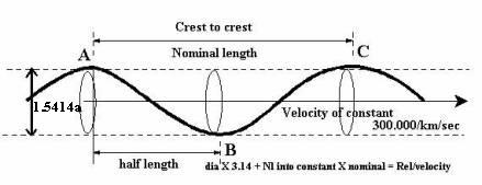 Since it is absolute that for any wave velocity both its length and amplitude enter into the calculation, let us instead calculate that radial velocity and utilize the circumference at 4.84A as a standard for it.