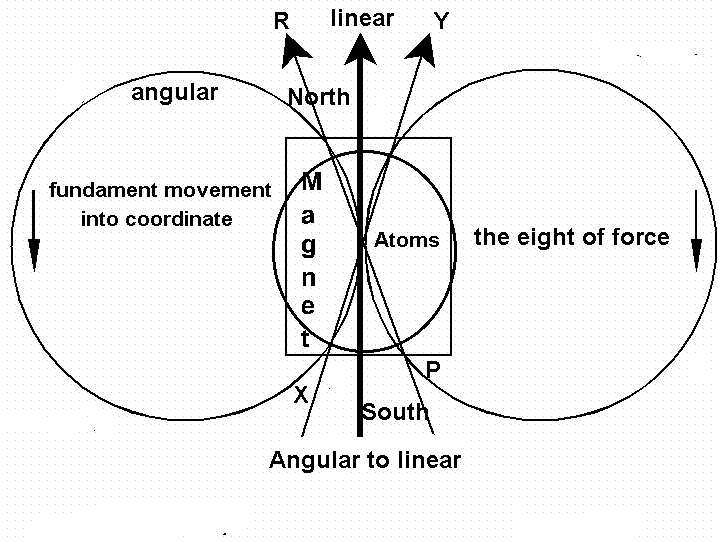 I refrain from going into the greater detail how and why this comes about in eight, a knowledge not yet suited for man. It is however obvious and evident in all that is observed. Here that angular movement comes in at one end, and out the other that in all respects creates a, or the "linear" movement south to north. It thus is from the angular that linear movement is produced. And that fundamental movement being conductive as well as directionally conductive, there is attraction as well as repulsion.