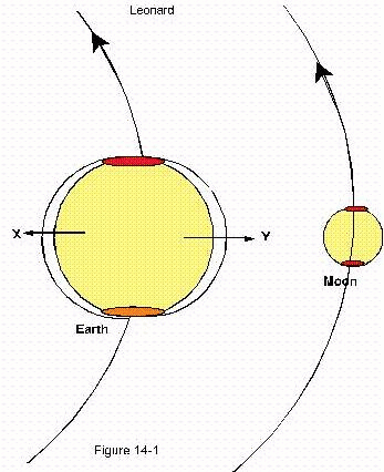 Arrow A of figure 14-1 displays the orbital track of the earth. According to this latest theory then, the earth is to physically move out from under its waters so that it may lag behind our movement, which (as they erroneously speculate) causes the tides.
