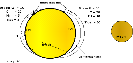 figure 14-2: Quote: "The moon pulls more on the waters at point E,