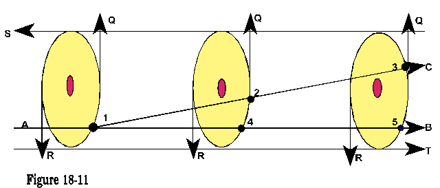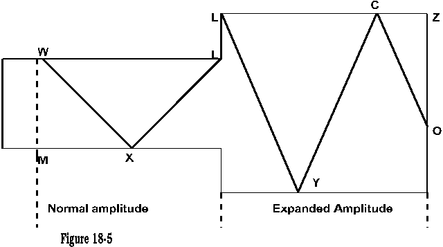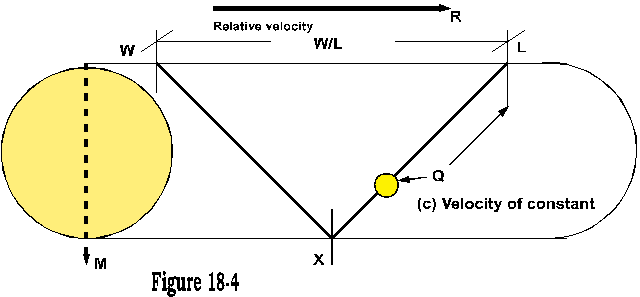 Consequently, the train of the wave (part Q) is now forced to pass by a greater tubular width, as illustrated by figure 18-5, WXL into LYC, wherein the relative velocity is compared WL to LC, and LC will be comparably reduced.