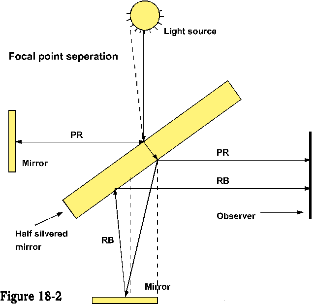 But now let us go forward to a different grade of schooling to proceed from there. Reference figure 18-2. The interferometer as a timing device, in the way it was set up is self-defeating, compensatory. If however we had looked for a focal point separation it might have sufficed.