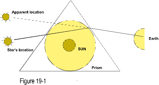 Illustration Figure 19-1 demonstrates the sun with its atmosphere. And like any star or planet, its atmosphere acts on light just as a glass prism acts on light bending it from the normal when it is cast upon it in some angle.