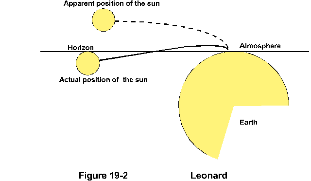 The same phenomena is observed with our sun which - when it appears to be above the horizon while in fact it is below the horizon (Figure 19-2)