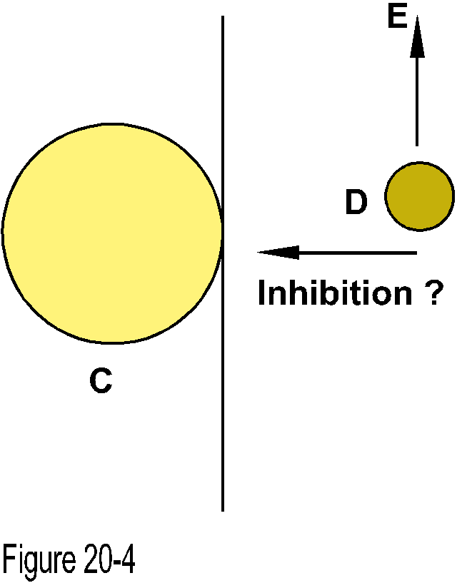 We might acclaim that we are back at Newton and his gravity, but as I mentioned before, this is not so. For this kind of gravity, which for the moment we chose to call inhibition, (Figure 20-4) - is not the same.