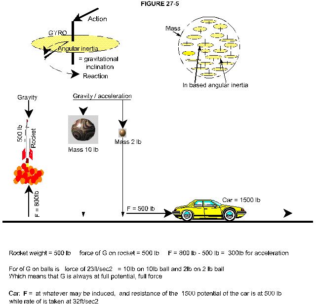 We might also explain it this way: Gravity in its fundamental constant acts only upon the “Angular inertia” (noted figure 27-10) of the mass (wherefore its weight remains unchanged at any movement in velocity).