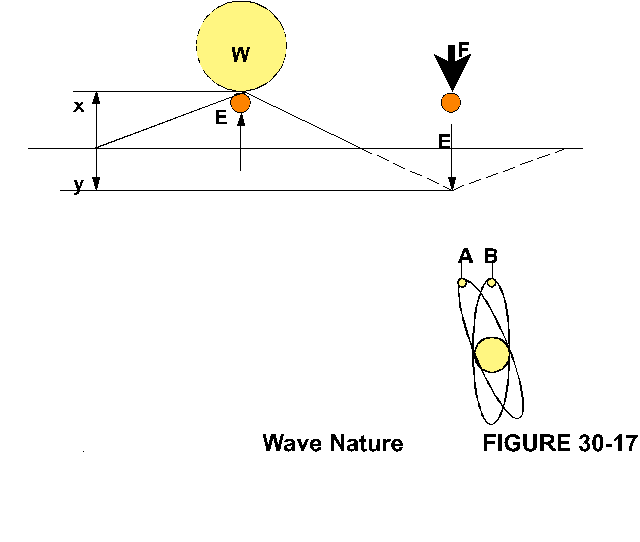 How therefore is the electron as a particle more substantial than the collateral of a sine formation, to stop without some huge ball (Figure 30-17 / W) W) in its way to counteract its movement? And what force (F) might there exist to accelerate it back for the next dent in the line, also to consider that this must proceed at high speed (trillions of times per second).