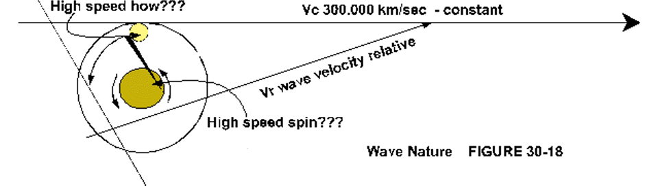 By figure 30-18, for illustration, the velocity at which waves are transposed has a unique constant, it being (assumed) 300.000 km/sec, and the term “constant” is what makes it so unique. The quest then is - how and why so constant?