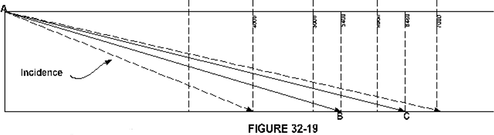 This is further demonstrated by figure 32-18. Let us consider a 6000-angstrom wave, noted AF that by the tubular formation proceeds ABF. Note therefore how the angle of incidence is AB upon which our refractive separation is based, recorded on the spectra.