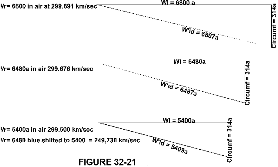 And to place an extreme reduction of Z into the wave, let us expand the wave by 3000 angstroms (z/3 red-shift - AHM), half the original length of the wave, that presumably could be caused by a speed equal to one half the speed of light.