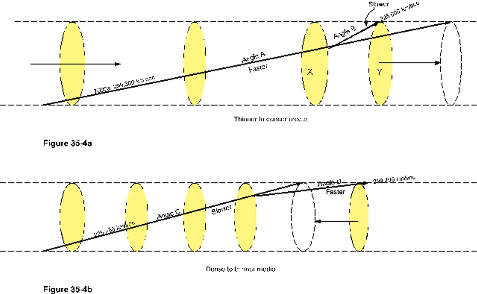 And thus coming back at the quest if the lengths of light are or can be compressed, what shall the answer be? Realistically it is difficult to conceive how a wave can wrap itself from a single turn to more than a double turn (as in figure 35-2) around the circumference considering how the index is no more than 1.33.