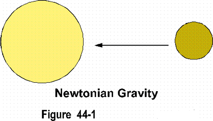 Newton's concept for the unseen and unknown force of gravity seated itself in the mass of the objects: "Every mass having a force where-with it attracts every other mass". (Figure 44-1).