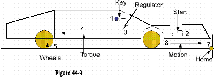 Yet another example in order to make gravity better understood. By illustration figure 44-9, one needs a "key" to "start" the car, and place it in gear, to "regulate" it, which results into a "torque" upon the drive-shaft implementing angular momentum (precession), to the "wheels".