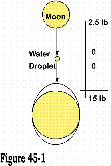 This of course does not make sense, since clearly a tug of war is won by the strongest. A droplet of water between the moon and us cannot be drawn but to our own direction. (figure 45-1).