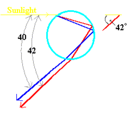 Since then all light always travels through all media at that one single constant of 300.000 km/sec, its relative velocity (distance in time) is reduced according to its angular moment.
