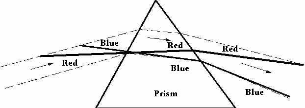 Established fundamentals show light to refract to an index in velocity, dispersing according to the varied speed of the separate wavelengths.