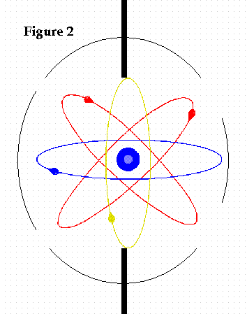 By figure 2 we start out with the atom that for its internal movements is the likes of a gyro. And as such it is something that "stays in place". This internal movement as a whole is properly called "Angular movement". And besides "angular" there is a movement called "Linear". The first is motion in a circle, while linear is straight on.
