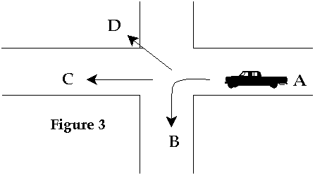 Then let us behold a few examples of "inertia" how it affects us and the things around us. In reference to figure 3, you are in your pickup and there is no stop sign at the intersection while you are in a hurry making a left turn.