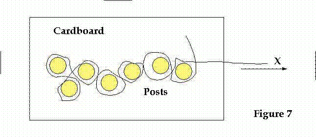 Take a piece of cardboard paper and glue some posts onto it, then wrap a string around these posts as shown but do not tie a knot. As then you pull on the string at point X you will move the entire sheet since the string by its design or coordinate upon the sheet forms a bond therewith.