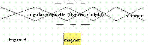 The composition of copper or wood, or plastic for example will easily conduct the magnetic coordinate, but not lay any hold onto it. The "hold" then, -- to provide us with some means to rationalize how in principle that proceeds within these bars is illustrated by figure 7.