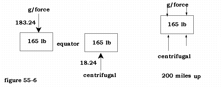 The radius given is of course the 4200 miles from earth's center. But will our object stay up there at a speed of no more than 6908 mph? Our quest is, now that we found that 165 lb of centrifugal to counteract that g/force as we surmised -- are the two forces equal so it may float free for us? The answer is; "No, it will not.