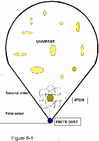 Its fundamental footing in the phenomena of nature can hardly be over-stressed and may be illustrated by a cone wherein the entire universe traces down to the atom as its basic component and single footing (Figure 6-1).
