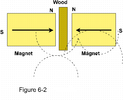 But something that is neutral, it is not going to intervene one way or the other. Take the two magnets in figure 6-2 placing a neutral piece of wood between them will not prevent the two from repelling one another.