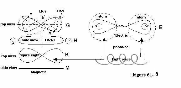 In a continuation from our previous illustrations of figures 61-5 and 6, I wish to show the dominance of what appears like unto magnetic and electric. At one time I said, how nature is many things, yet its footing is single, which may be enhanced by the following.
