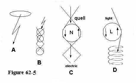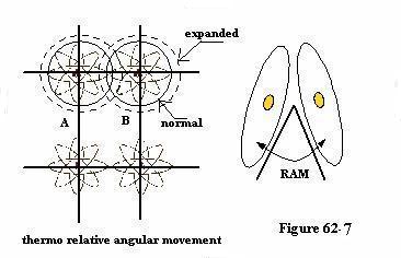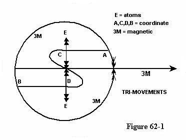 For a more constructive representation Figure 62-7, the two atoms A, and B, are, like in all substances, set in a grid, be they rigid or pliable. The two so shown are bound together by the three major categories of movement that I mentioned earlier.