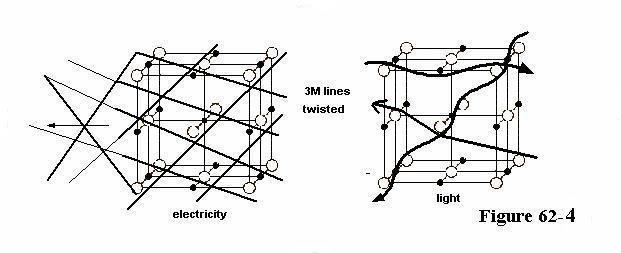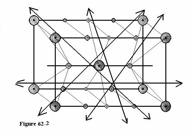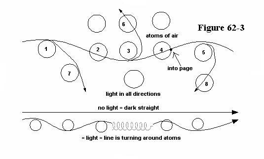By the illustration figure 62-9, as the line of light passes from 6 O'clock, to 7 and 8 O'clock, it continues straight on since the spacing of the atoms is equal. (Figure 62-10)