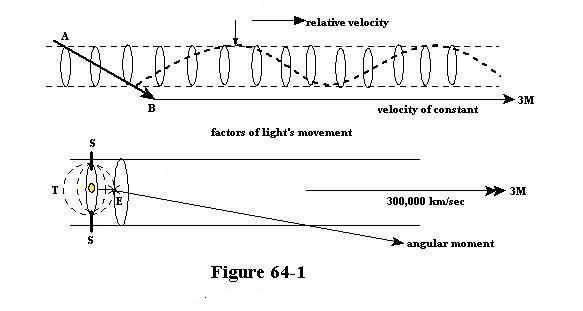 Since then I have dealt with light in many of my pages, let us by this page hope to come a step further. Our first reference will be to illustration figure 64-1 , and as I have said elsewhere there are always two factors by which electro-magnetic waves move, simply because they are of, and belong - to that magnetic spectrum. The second factor is the media upon which the wave of light travels, and is fully dependent upon.