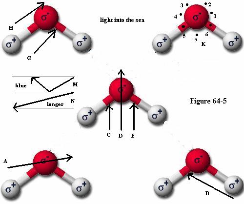 What light-wave then would stand the best chance of getting as deep as possible into water before it is arrested, if not the ones with the most angular moment as shown by M? The longer lengths of light are more readily arrested not being able to pass around those connections by which the hydrogen atoms are bound to the oxygen atom.