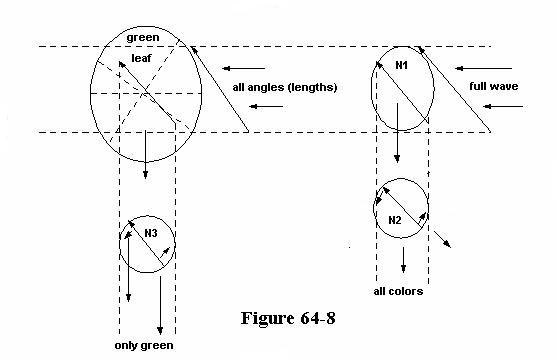 I do not pretend to know it all, but I am relating what is most obvious, and what agrees with nature as we know it. Accordingly to get some idea as to how a light-wave may pass by one atom while arrested by another, by illustration figure 64-6, at the left, the light coming upon that atom in an angle with its movement in like direction passes over.