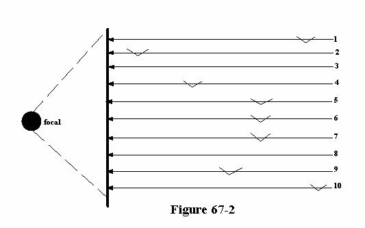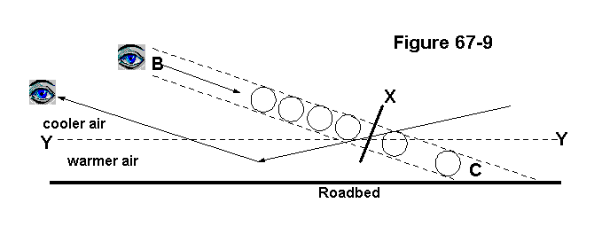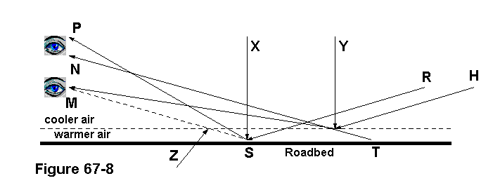 When referring to Figure 67-8; if we look at the roadbed from an angle noted P-S, there is no diffusion, nor is there from angle N-T. Yet there is from angle M- to -H.