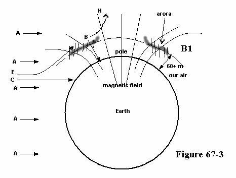 And for their so called solar wind particles being funneled down, they have no idea of what they are saying. By the illustration figure 67-3, if any solar particle lies in the path of the earth, it will not funnel anywhere but pass straight on to earth's surface as illustrated by arrow C.