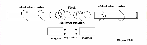 This may be compared to regular magnets in their directional flow of movement, when opposing directions of movement are brought together (Figure 67-5), these will block the continuation of it, or as usually stated; repel.