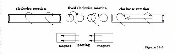 When therefore the current in its rotational movement matches that of the diode material, the flow of movement will proceed. (figure 67-6) If however in the opposite direction of rotation as per illustration figure 67-5, the passage is blocked.