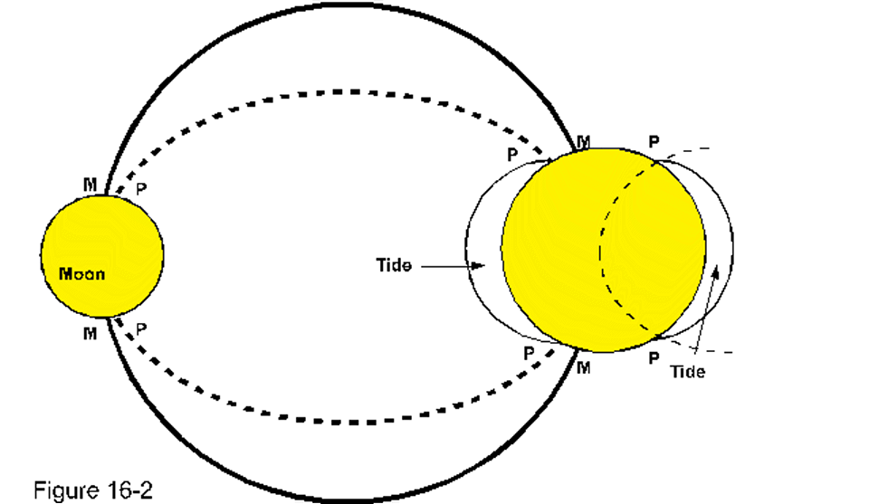 Illustration Figure 16-2, demonstrates the lines of 3M as they pass over the moon, and the moon for its velocity attempting to get away from us - is held by these lines, and as it does - it elongates those lines of the 3M that are between the earth and the moon.