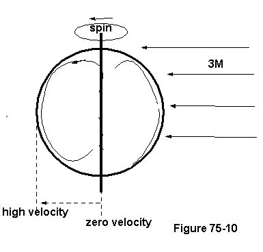 Then there is Figure 75-10, something that bears upon the formation of movement. When an object spins there is a high and low velocity, as well as zero velocity, and of course the 3M. But I promised myself not to dwell on this.