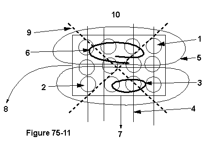 As now by a like direction of these lines of movement these do adhere, the shape of their formation changes accordingly - as illustrated by Figures 75-5 and 75-6. Fundamentally they are figures of eight, and as such very resilient to take on whatever shape is forced upon them.