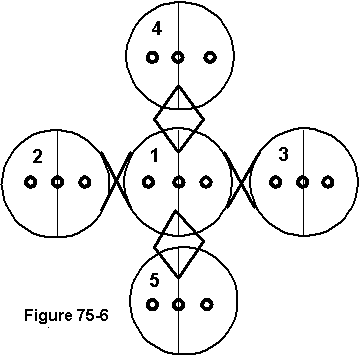 When therefore we consider Figure 75-6, where we have 5 atoms of a metal, two of them bond by the dual triangle, with the other two in the X, the crossing. These bonds seem quite possible even if there be a single figure of eight upon each of these atoms.