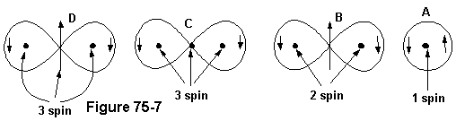 By Figure 75-7, at A, is the circle, its movement always coming back to where it was, or started, and as such is inertia. Like a spinning top, or a bullet turning in flight.
