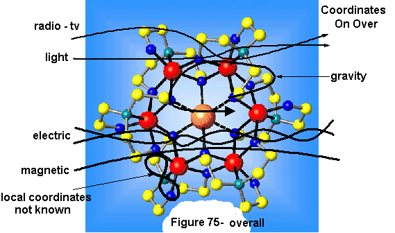 Let us proceed to illustration Figure 75-1. There are two atoms, and so let me relate to you how I envision the atom. No protons, and no electrons, nor neutrons, nor quarks, or whatever else man has come up with. And having pronounced the substance in the term of "finite dust," at this time let us attempt to improve upon it.